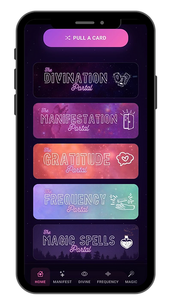 The Divination Portal: Oracle and Tarot decks for quick card pulls or deeper AI-powered readings. Submit a question and receive personalized guidance anytime.